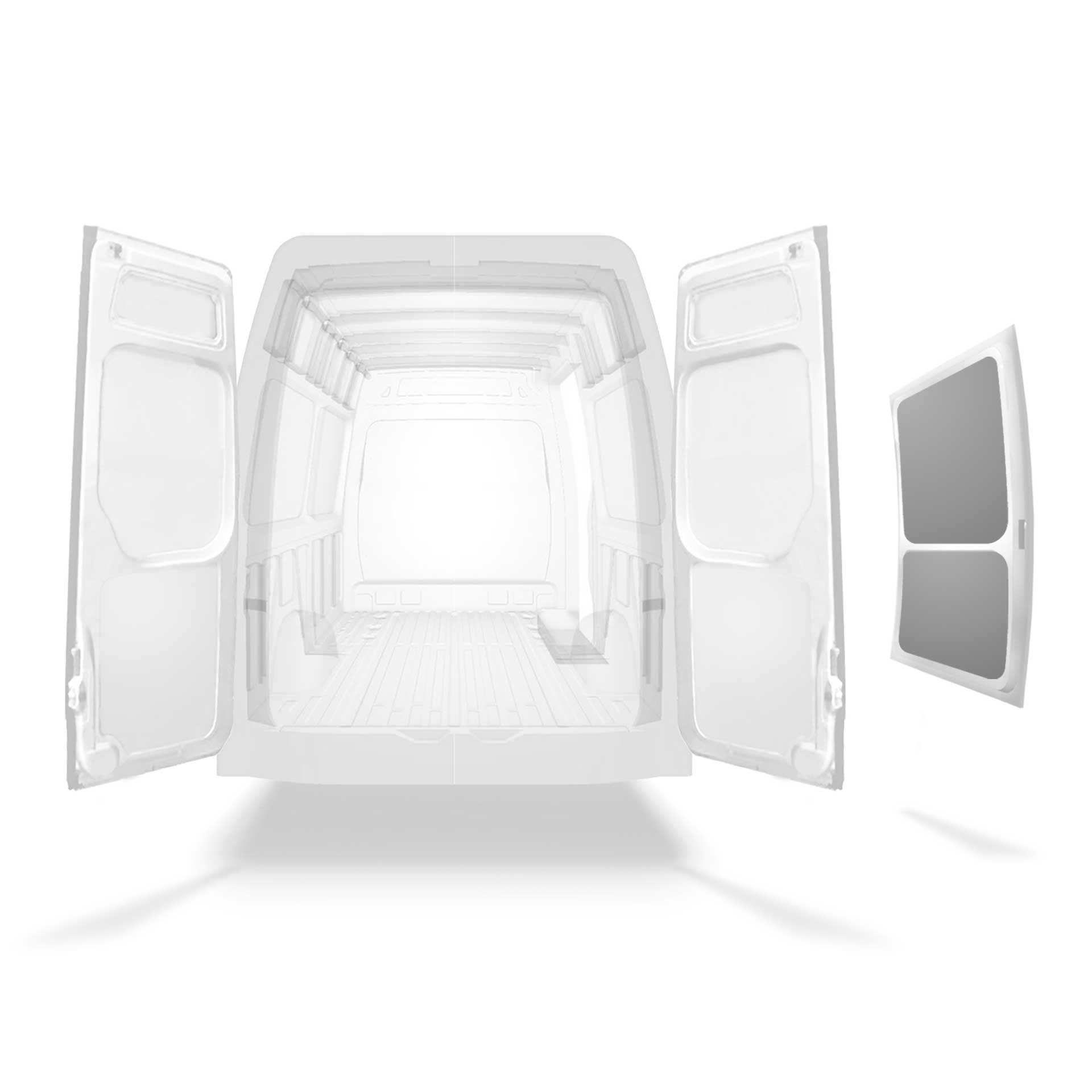 Este ligero revestimiento panelado de puertas laterales es para una Mercedes Sprinter con puerta lateral a la derecha. Todos los materiales del revestimiento panelado utilizados son fáciles de limpiar y crean un entorno de trabajo luminoso.