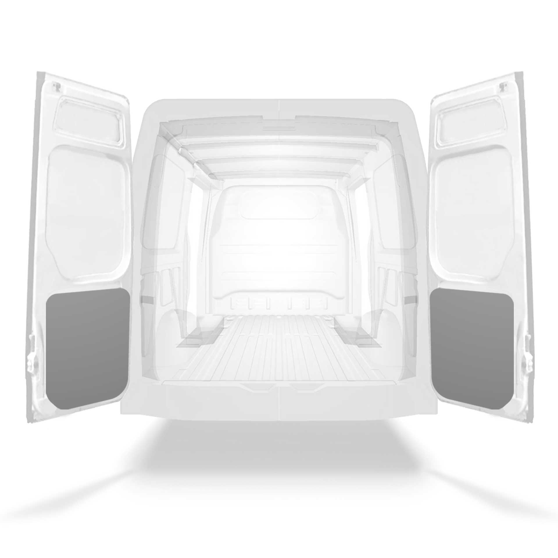 Revestimiento panelado posterior inferior ligero para portón trasero de Mercedes Sprinter con dos puertas laterales. Diseñado para conferir un acabado profesional al interior, los revestimientos para puertas protegerán la furgoneta y son fáciles de limpiar.