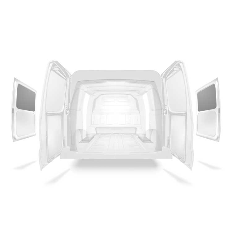 Los revestimientos para la puerta lateral, portón trasero y techo se venden por separado. El material de instalación también se vende por separado.