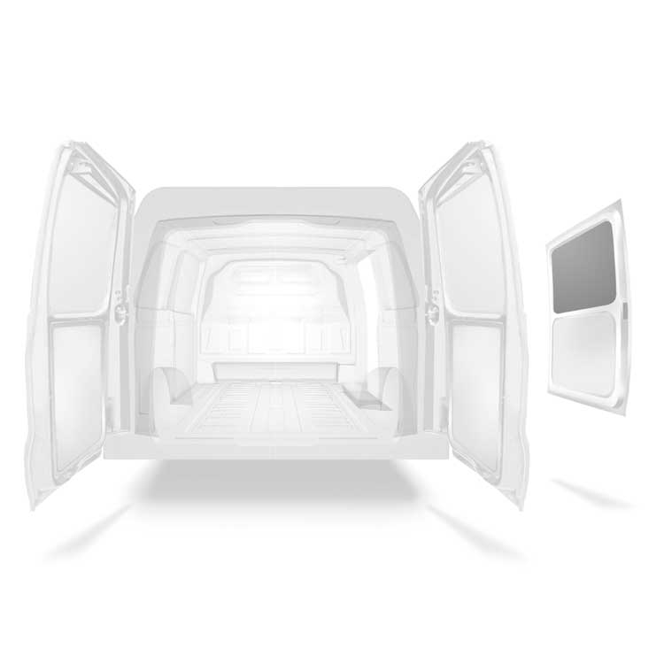 Panelado ligero para paredes interiores de Mercedes Vito con puerta lateral a la derecha. El revestimiento reducirá el desgaste y el deterioro del interior, y ayudará a mantener el valor residual de la furgoneta.