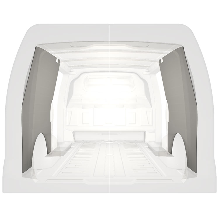 Revestimiento integral ligero para paredes internas de Mercedes Vito con puerta lateral a ambos lados. Los revestimientos crearán un entorno de trabajo luminoso y agradable y son fáciles de limpiar.