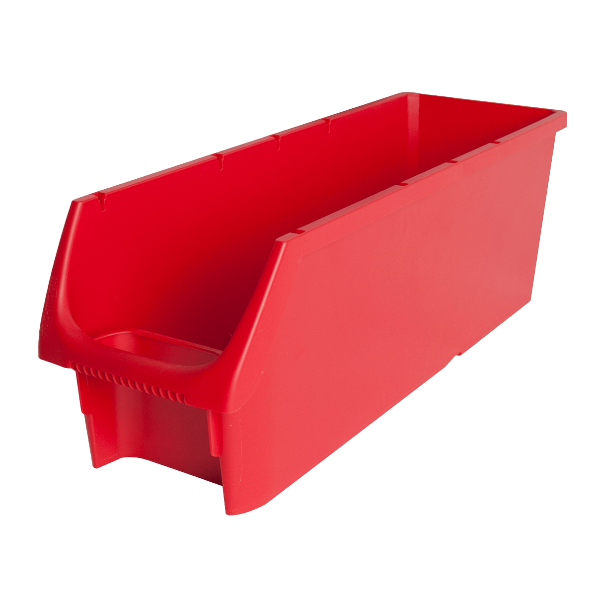 Modul-Box compatible con estanterías con una profundidad de 486 mm. Fabricada en plástico resistente a los impactos y a la mayoría de aceites, ácidos y productos químicos.
