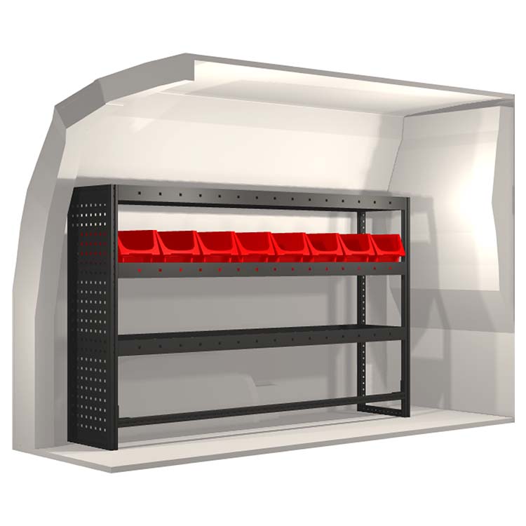 El equipamiento ha sido especialmente diseñado para garantizar el ajuste óptimo para el vehículo, así como la mayor funcionalidad y seguridad posible. Se ha desarrollado para uso profesional, es versátil y está destinado para trabajos de servicio en diversos tipos de negocio. Todas las estanterías están equipadas con alfombrillas de goma, y todos los cajones con alfombrillas de espuma de plástico. Los accesorios de montaje están incluidos.