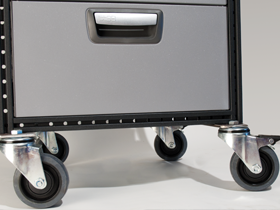 Each drawer is fitted with ball bearing runners as standard, and has a load capacity of 30 kg with a maximum of 100 kg per drawer unit. The drawers are fully extendable and equipped with stoppers. For maximum utility, the drawer unit can be equipped with accessories such as foam plastic liners, plastic inserts and dividers. To help optimize the weight, cover panels and tool boards are optional.