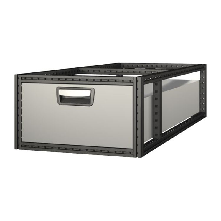 Las cajoneras extralargas tienen un bastidor de acero de alta resistencia y cajones de aluminio. Los cajones están equipados de serie con rodamientos de bolas, y la combinación de rodamientos fijos y flexibles hace que sean estables y fáciles de manejar.