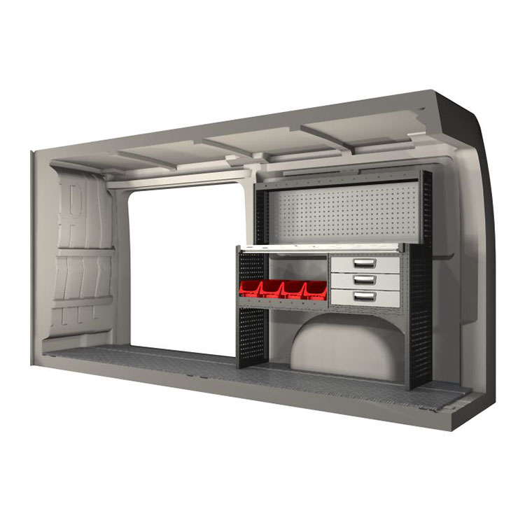 El equipamiento ha sido especialmente diseñado para garantizar el ajuste óptimo para el vehículo, así como la mayor funcionalidad y seguridad posible. Se ha desarrollado para uso profesional, es versátil y está destinado para trabajos de servicio en diversos tipos de negocio. Todas las estanterías están equipadas con alfombrillas de goma, y todos los cajones con alfombrillas de espuma de plástico. Los accesorios de montaje están incluidos.
