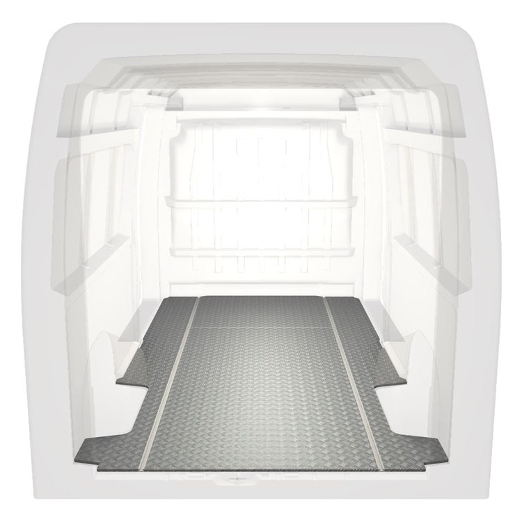 Los suelos extra largos para Citroën Jumper / Peugeot Boxer / Fiat Ducato son ligeros y robustos, e incorporan una placa de aluminio antideslizante y raíles de carga (longitudinal) que permiten la instalación rápida y segura de sistemas de estantes y otros accesorios.