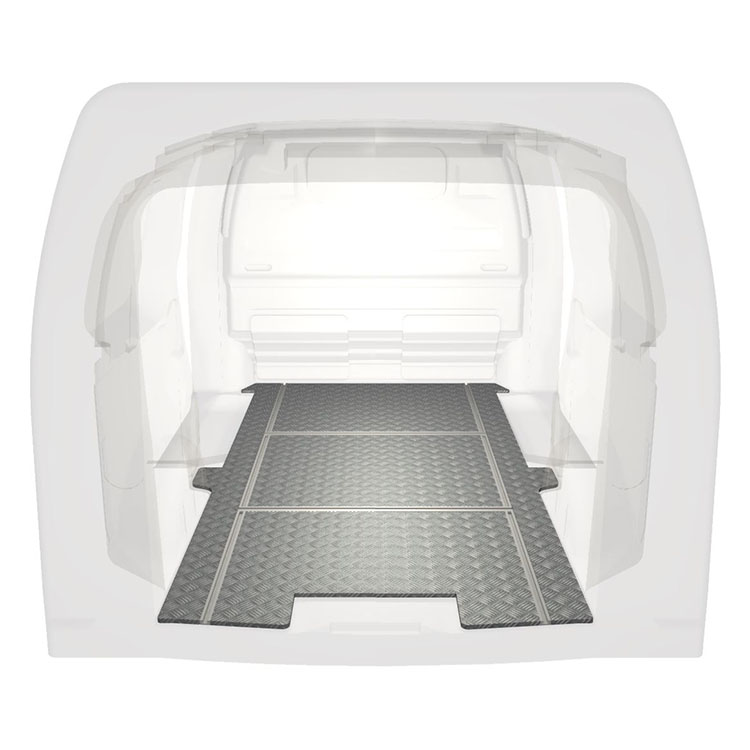 Disponemos de suelos ligeros y robustos con raíles transversales para Citroën Jumpy / Peugeot Expert / Toyota ProAce que incorporan una placa de aluminio antideslizante y raíles de carga (longitudinales y transversales) que permiten la instalación rápida y segura de sistemas de estantes y otros accesorios.