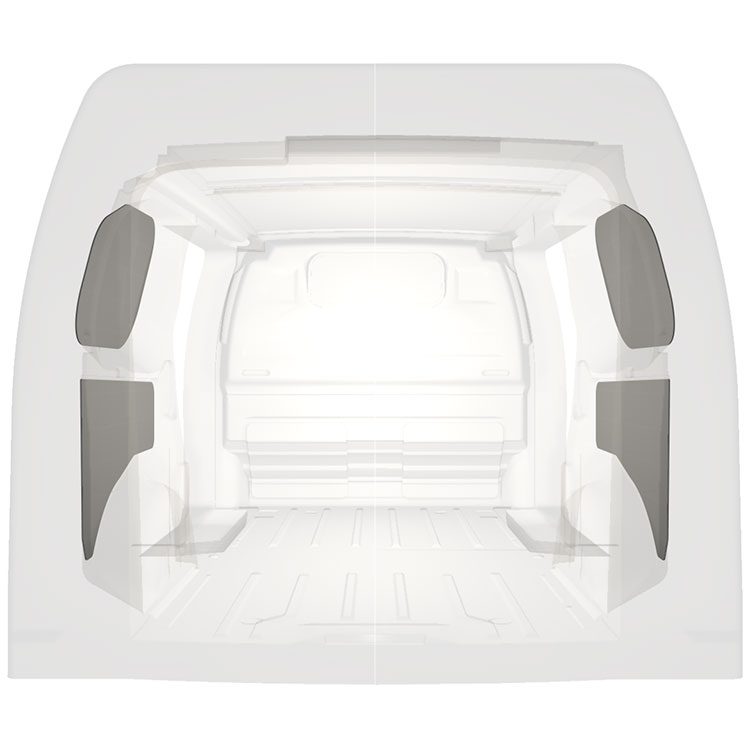 Panelado precortado ligero para paredes interiores de Citroën Jumpy / Peugeot Expert / Toyota ProAce con puerta lateral a ambos lados. Los revestimientos crearán un entorno de trabajo luminoso y agradable y son fáciles de limpiar.
