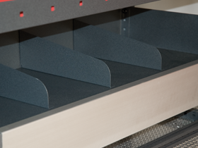 With this divider you can easily divide shelves with hinged fronts into smaller compartments. The dividers are mounted using rivets. Intended for a 486 mm deep and 216 mm high shelf.