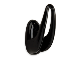 Clothes hook made of black polyamide. Mounted using srews or rivets.