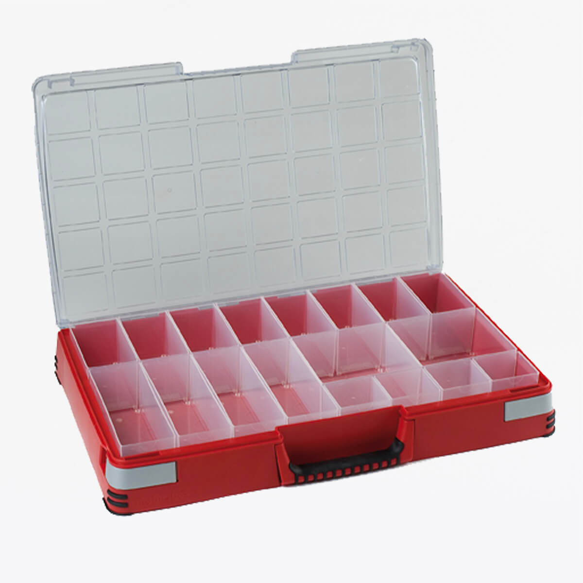 La Mobil-Box es un maletín de almacenamiento práctico y portátil con un diseño atractivo e insertos modulares. Es ligera, fácil de transportar, altamente resistente a los impactos y cuenta con esquinas y asas recubiertas de goma para un mejor agarre y protección adicional. El material resiste la mayoría de aceites, ácidos y productos químicos.