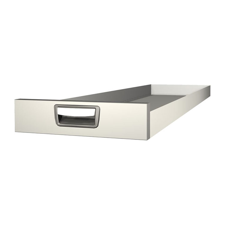 Robusto cajón extralargo para el montaje en un marco de cajonera. El cajón, fabricado en aluminio, tiene cojinetes de bolas de serie y la mezcla de cojinetes fijos y flexibles hace que el cajón sea estable y fácil de manejar.
