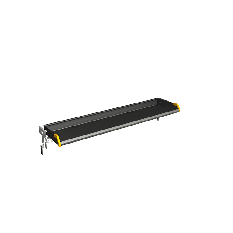 Las estanterías plegables están disponibles en varias longitudes para adaptarse perfectamente a diferentes modelos de vehículos. Para que sean fáciles de manipular, los estantes están equipados con amortiguadores de gas de serie. El diseño con el lado superior y bordes posteriores asegura que los paquetes se sujetan bien en las estanterías cuando el vehículo esté en funcionamiento. El diseño del borde frontal de la estantería facilita la descarga. Cada estantería tiene una capacidad de carga de 120 kg, y puede ser montado con diferentes grado de inclinación.