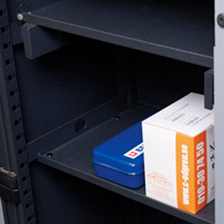 Vertical locker with integrated lock. As an option, the locker can be fitted with fixed or extendable shelves, and a clothes rail.