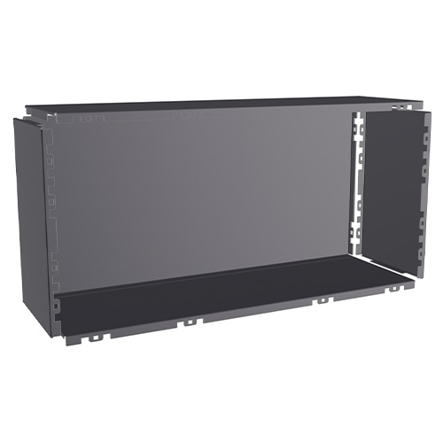 The frame can be placed over a wheel arch, providing a very secure foundation for drawer units and/or lockers with a load capacity of up to 200 kg. The clearance is 351/459 mm. Add cover panels to the frame (kit for horizontal locker), a drop-down door, or an EGS door that opens vertically upwards. A bench top can be fitted to create an additional work surface.