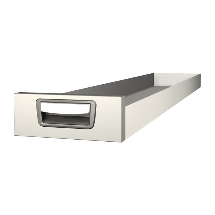 Robusto cajón extralargo para el montaje en un marco de cajonera. El cajón, fabricado en aluminio, tiene cojinetes de bolas de serie y la mezcla de cojinetes fijos y flexibles hace que el cajón sea estable y fácil de manejar.