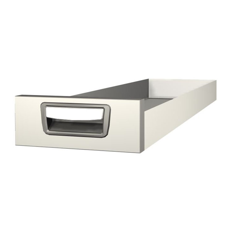 Robusto cajón extralargo para el montaje en un marco de cajonera. El cajón, fabricado en aluminio, tiene cojinetes de bolas de serie y la mezcla de cojinetes fijos y flexibles hace que el cajón sea estable y fácil de manejar.
