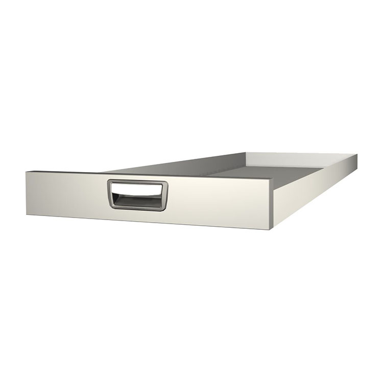 Robusto cajón extralargo para el montaje en un marco de cajonera. El cajón, fabricado en aluminio, tiene cojinetes de bolas de serie y la mezcla de cojinetes fijos y flexibles hace que el cajón sea estable y fácil de manejar.