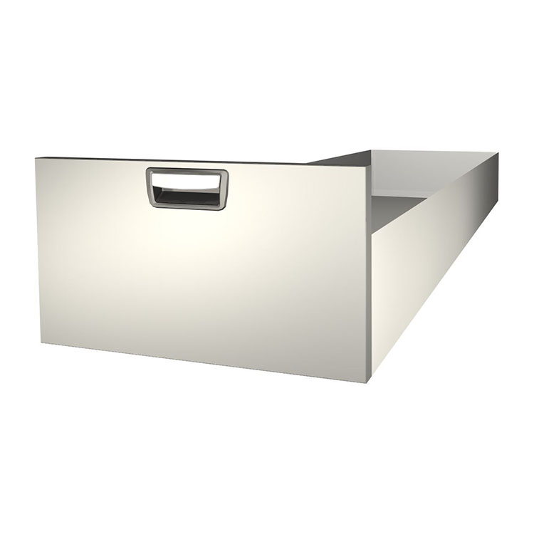 Robusto cajón extralargo para el montaje en un marco de cajonera. El cajón, fabricado en aluminio, tiene cojinetes de bolas de serie y la mezcla de cojinetes fijos y flexibles hace que el cajón sea estable y fácil de manejar.