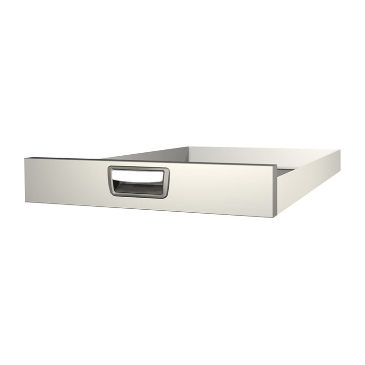 Robusto cajón extralargo para el montaje en un marco de cajonera. El cajón, fabricado en aluminio, tiene cojinetes de bolas de serie y la mezcla de cojinetes fijos y flexibles hace que el cajón sea estable y fácil de manejar.