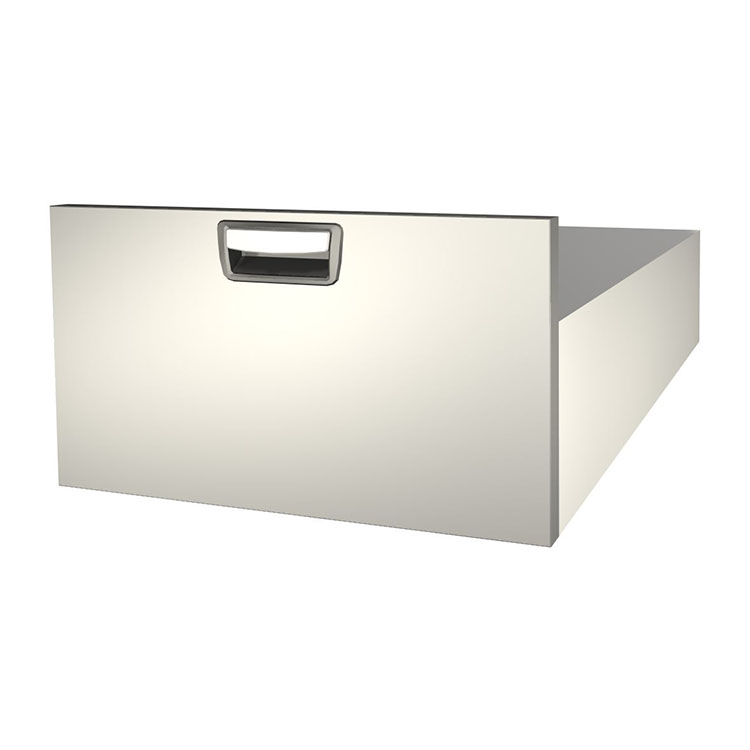Robusto cajón extralargo para el montaje en un marco de cajonera. El cajón, fabricado en aluminio, tiene cojinetes de bolas de serie y la mezcla de cojinetes fijos y flexibles hace que el cajón sea estable y fácil de manejar.