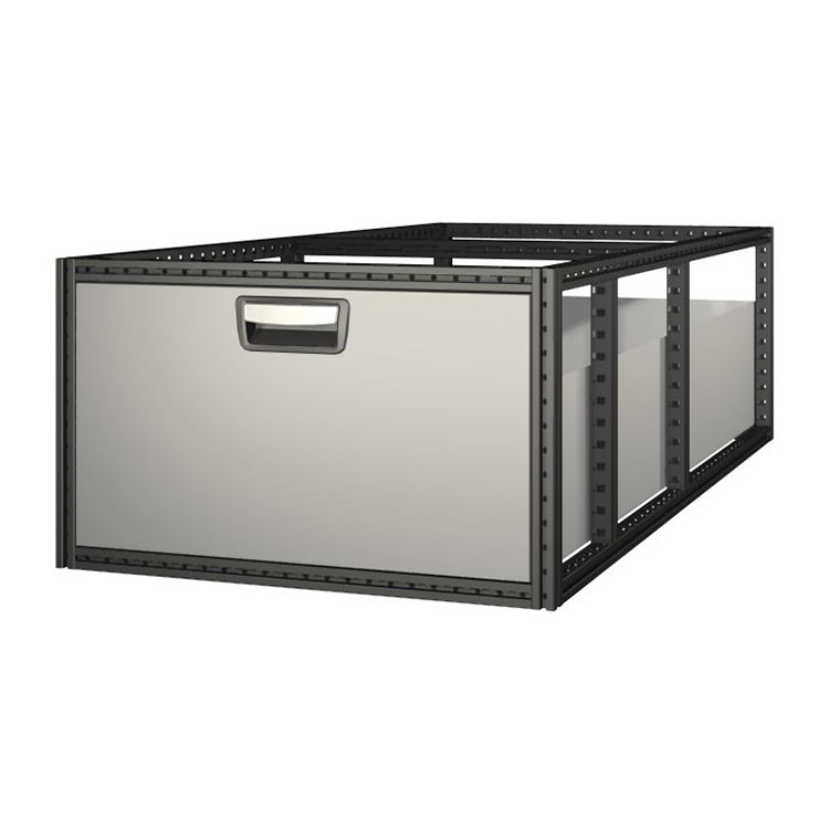 Las cajoneras extralargas tienen un bastidor de acero de alta resistencia y cajones de aluminio. Los cajones están equipados de serie con rodamientos de bolas, y la combinación de rodamientos fijos y flexibles hace que sean estables y fáciles de manejar.