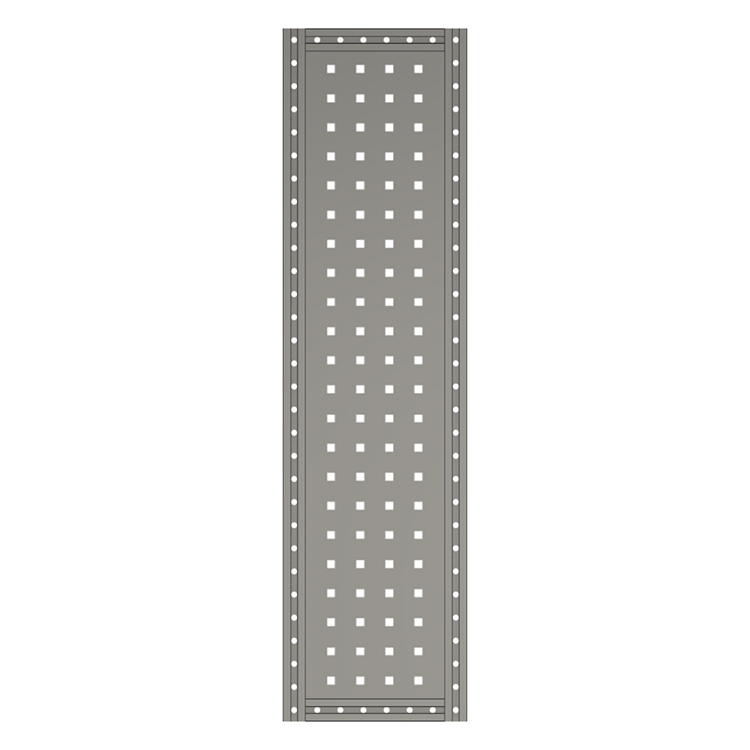 Shelf end supports with tool board are available in several heights and depths. The T-tracks integrated in the profiles are used for securing cargo, attaching accessories and for versatile surface mounting.