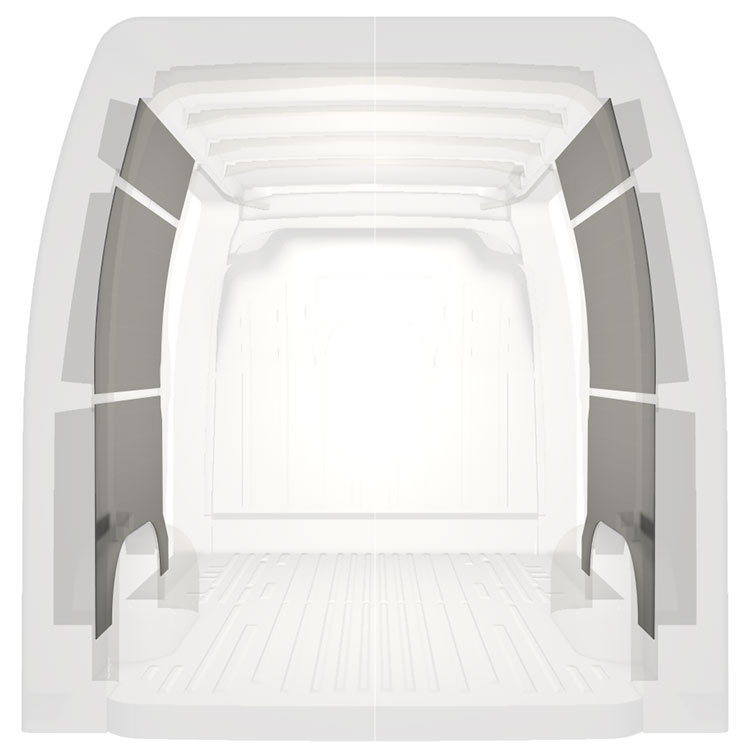 Panelado precortado ligero para paredes interiores de Renault Master / Opel Movano / Nissan NV400 con puerta lateral a ambos lados. Los revestimientos crearán un entorno de trabajo luminoso y agradable y son fáciles de limpiar.