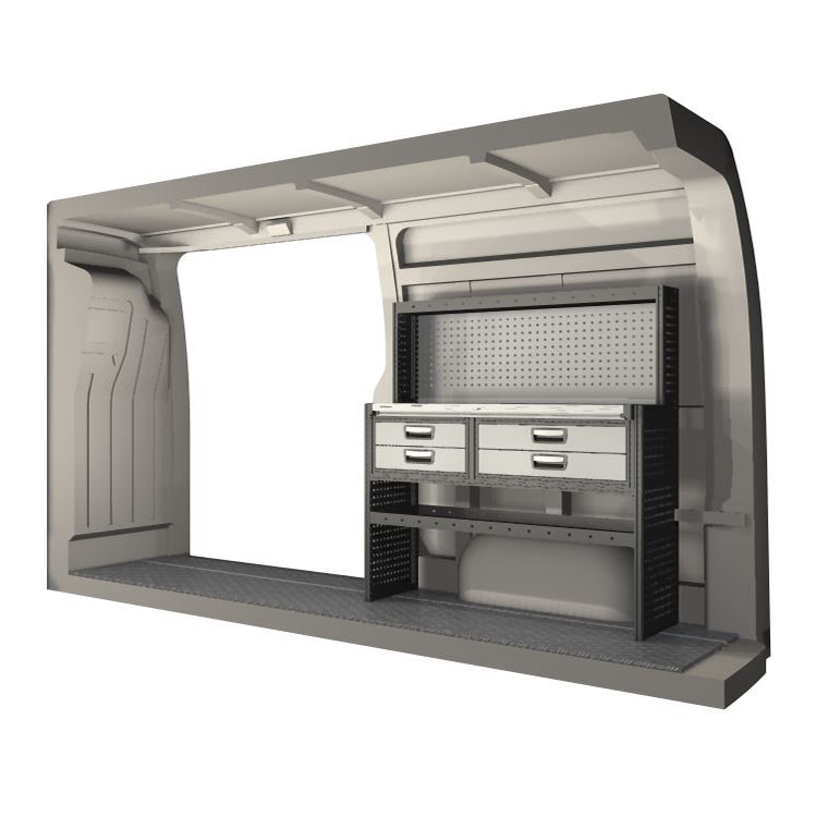 El equipamiento ha sido especialmente diseñado para garantizar el ajuste óptimo para el vehículo, así como la mayor funcionalidad y seguridad posible. Se ha desarrollado para uso profesional, es versátil y está destinado para trabajos de servicio en diversos tipos de negocio. Todas las estanterías están equipadas con alfombrillas de goma, y todos los cajones con alfombrillas de espuma de plástico. Los accesorios de montaje están incluidos.
