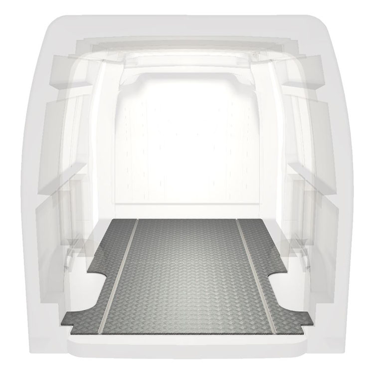 Los suelos extra largos para Renault Master / Opel Movano / Nissan NV400 son ligeros y robustos, e incorporan una placa de aluminio antideslizante y raíles de carga (longitudinal) que permiten la instalación rápida y segura de sistemas de estantes y otros accesorios.