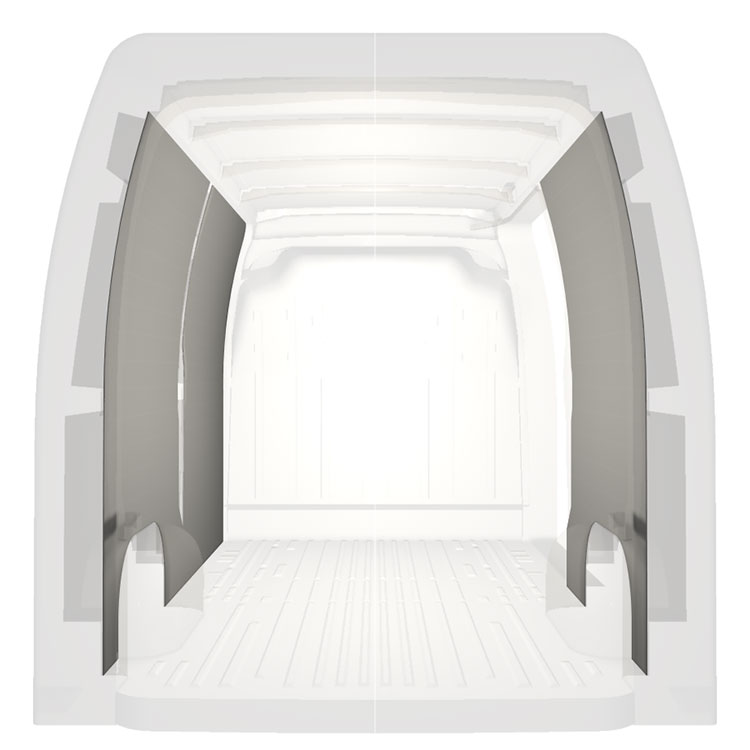 Revestimiento integral ligero para paredes interiores de Renault Master / Opel Movano / Nissan NV400 con puerta lateral a la derecha. Los revestimientos crearán un entorno de trabajo luminoso y agradable y son fáciles de limpiar.