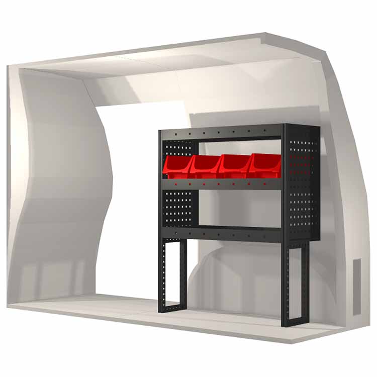 El equipamiento ha sido especialmente diseñado para garantizar el ajuste óptimo para el vehículo, así como la mayor funcionalidad y seguridad posible. Se ha desarrollado para uso profesional, es versátil y está destinado para trabajos de servicio en diversos tipos de negocio. Todas las estanterías están equipadas con alfombrillas de goma, y todos los cajones con alfombrillas de espuma de plástico. Los accesorios de montaje están incluidos.