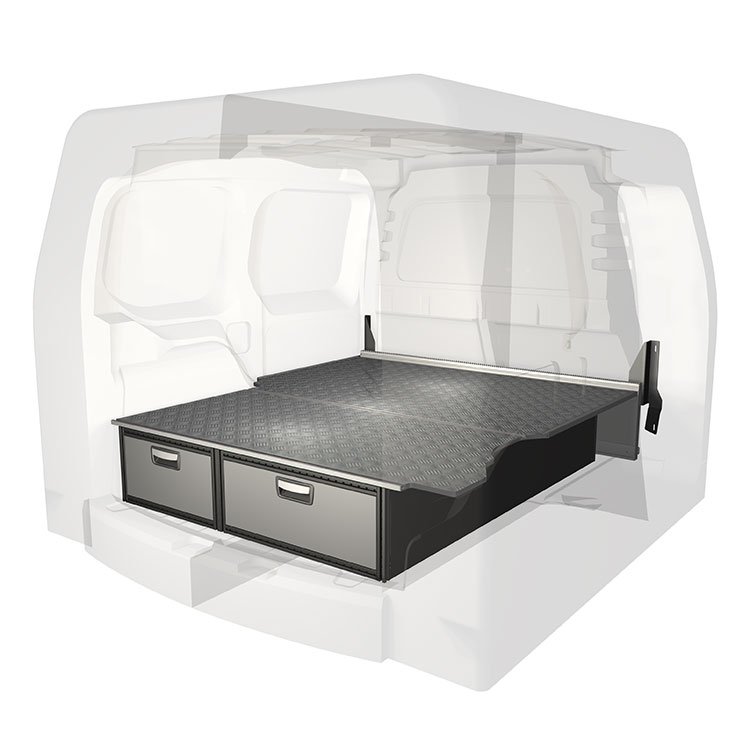 The Impact safety partition is installed together with a double-floor and developed to strengthen the partition between the load area and the cabin. In case of a rear-end collision, the Impact safety partition is designed to stop the double floor and the drawer units from being pushed into the cabin.