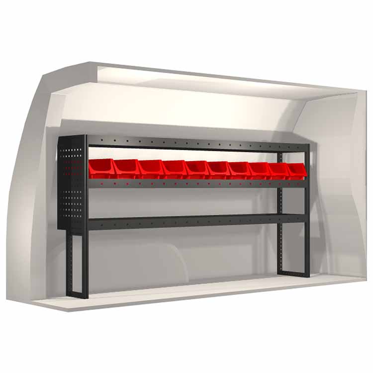 El equipamiento ha sido especialmente diseñado para garantizar el ajuste óptimo para el vehículo, así como la mayor funcionalidad y seguridad posible. Se ha desarrollado para uso profesional, es versátil y está destinado para trabajos de servicio en diversos tipos de negocio. Todas las estanterías están equipadas con alfombrillas de goma, y todos los cajones con alfombrillas de espuma de plástico. Los accesorios de montaje están incluidos.
