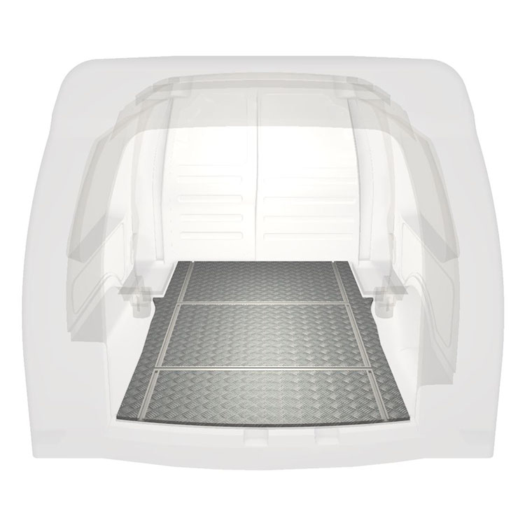 Disponemos de suelos ligeros y robustos con raíles transversales para Volkswagen Caddy Maxi que incorporan una placa de aluminio antideslizante y raíles de carga (longitudinales y transversales) que permiten la instalación rápida y segura de sistemas de estantes y otros accesorios.