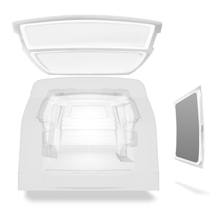 Further van liners for the vehicle inner walls, rear doors and roof are available separately. Installation material is also supplied separately.
