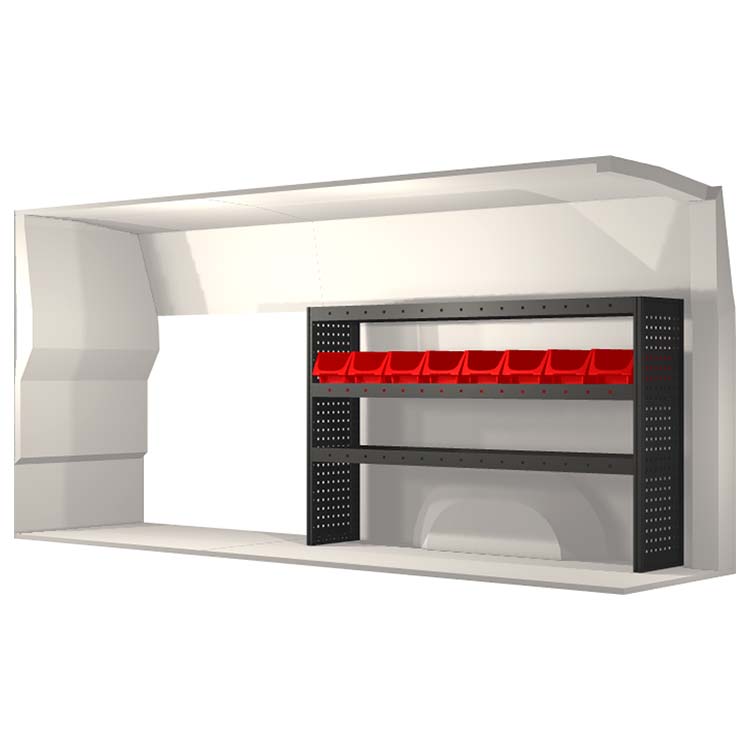 El equipamiento ha sido especialmente diseñado para garantizar el ajuste óptimo para el vehículo, así como la mayor funcionalidad y seguridad posible. Se ha desarrollado para uso profesional, es versátil y está destinado para trabajos de servicio en diversos tipos de negocio. Todas las estanterías están equipadas con alfombrillas de goma, y todos los cajones con alfombrillas de espuma de plástico. Los accesorios de montaje están incluidos.