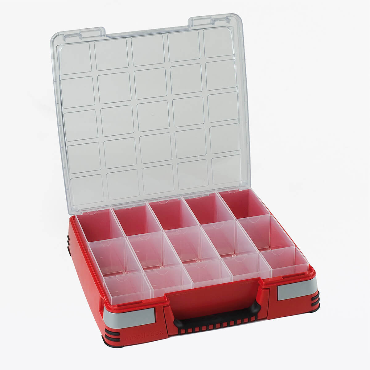 La Mobil-Box es un maletín de almacenamiento práctico y portátil con un diseño atractivo e insertos modulares.