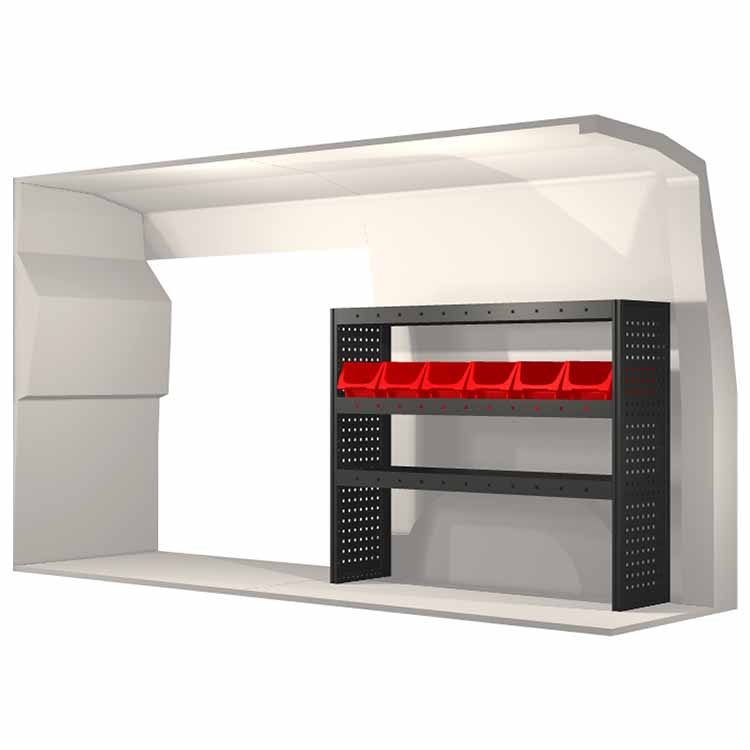 El equipamiento ha sido especialmente diseñado para garantizar el ajuste óptimo para el vehículo, así como la mayor funcionalidad y seguridad posible. Se ha desarrollado para uso profesional, es versátil y está destinado para trabajos de servicio en diversos tipos de negocio. Todas las estanterías están equipadas con alfombrillas de goma, y todos los cajones con alfombrillas de espuma de plástico. Los accesorios de montaje están incluidos.