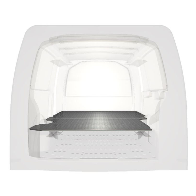 Double floor for a Volkswagen Transporter 2016- L2 with heater. The floor is designed to fit an extra-long drawer solution with one drawer unit 486x1458x270 and one 648x1458x270 coming out from the rear doors, and one drawer unit 648x1458x270 coming out from the side door.